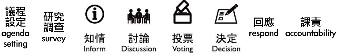• 審議流程 inform → discussion → voting → decision,是在政策形成的各階段都 loop 一遍嗎?